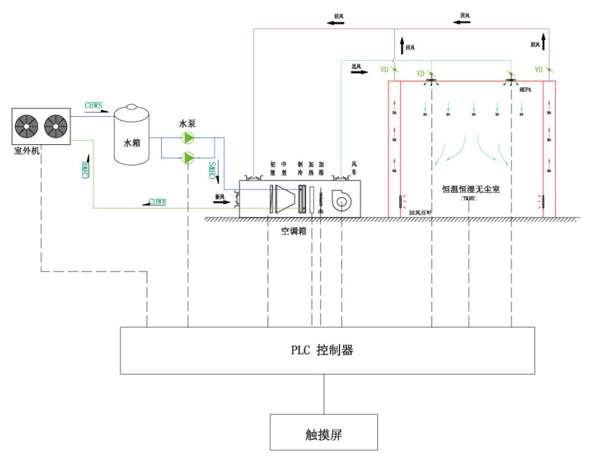 恒温恒湿实验室恒温恒湿实验室的恒温恒湿系统是指可用来限制并控制温度、湿度、洁净度范围及控制精度,使系统温湿度在任意室内或待定空间处于平衡的一种状态。其涉及到装饰装修、保湿隔热、精密空调、新风换气、电力供应、自动控制、环境监测等一系列工程领域。